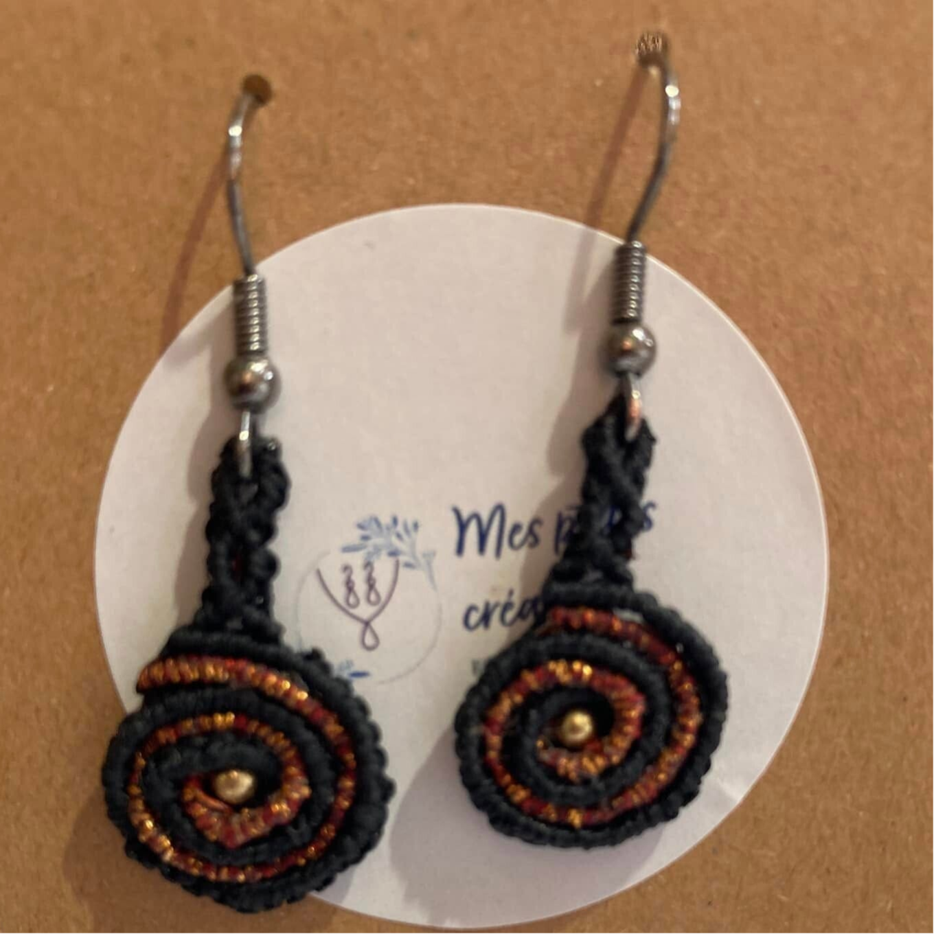Boucles d'oreille en micro macramé noir et cuivré